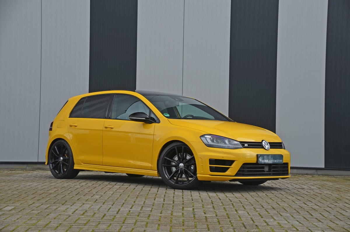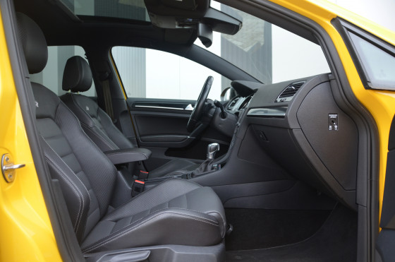 Geweldige Volkswagen Golf R 2.0 TFSI 4 Motion uitgevoerd in Ginster Yellow met maar liefst 300PK en 380NM. Een topsnelheid van 250 km/u en de 0 naar 100 sprint in minder dan 5 seconden. Een ongekend snelle en prachtige auto.