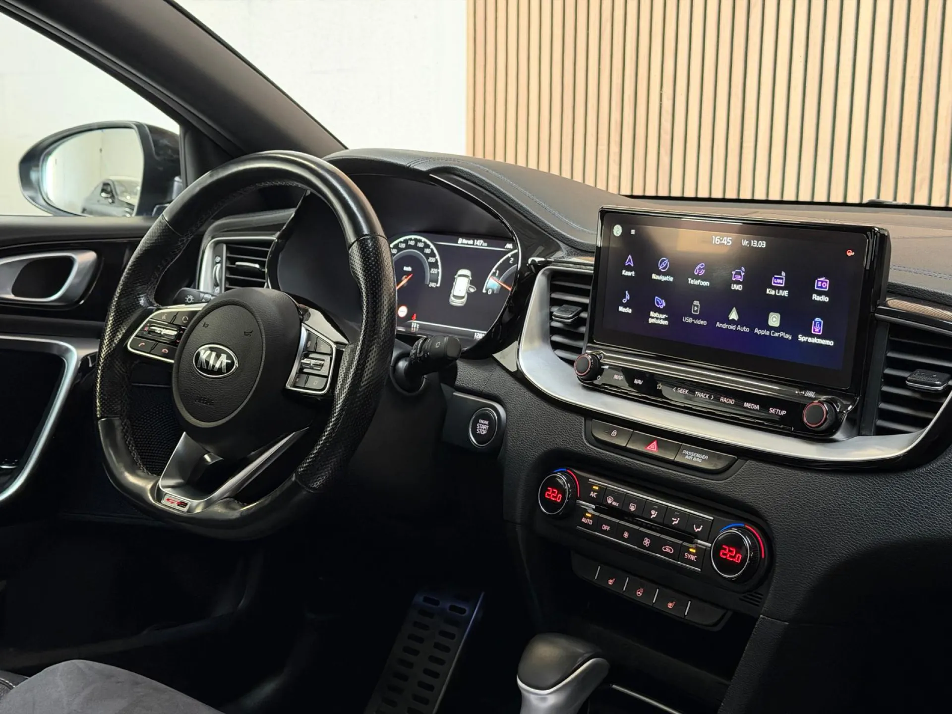 Het digitale dashboard geeft een nauwkeurig en makkelijk overzicht van alle belangrijke functies. U ziet geen paaltje meer over het hoofd dankzij de achteruitrijcamera. Adaptive cruise control houdt de ingestelde snelheid vast en houdt afstand tot het voertuig voor u. Een veiligheidsverhogende optie is de ingebouwde spraakbediening. Terwijl u uw ogen op de weg houdt, bedient u de auto met uw stem. Met uw smartphone maakt u overal contact met de auto. Remote services geven direct inzicht in uiteenlopende functies en zijn op afstand te activeren. Ook is de Kia uitgerust met: premium audiosysteem, navigatiesysteem, electronic climate control, draadloos opladen, DAB ontvangst en keyless entry.
