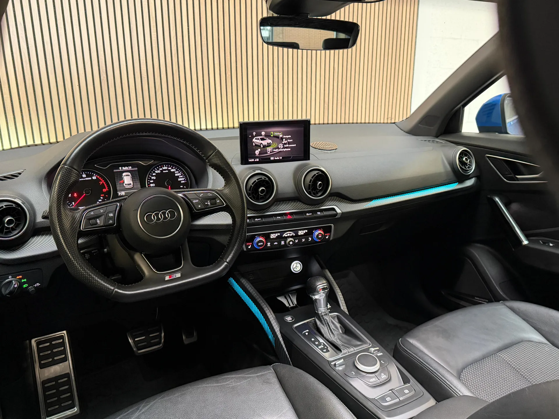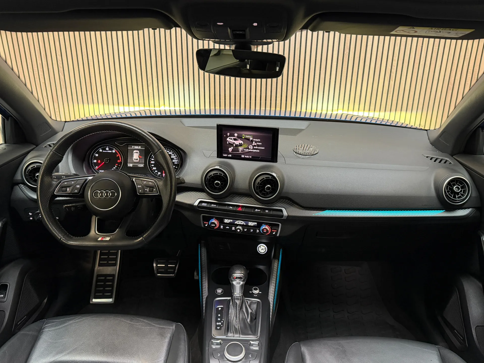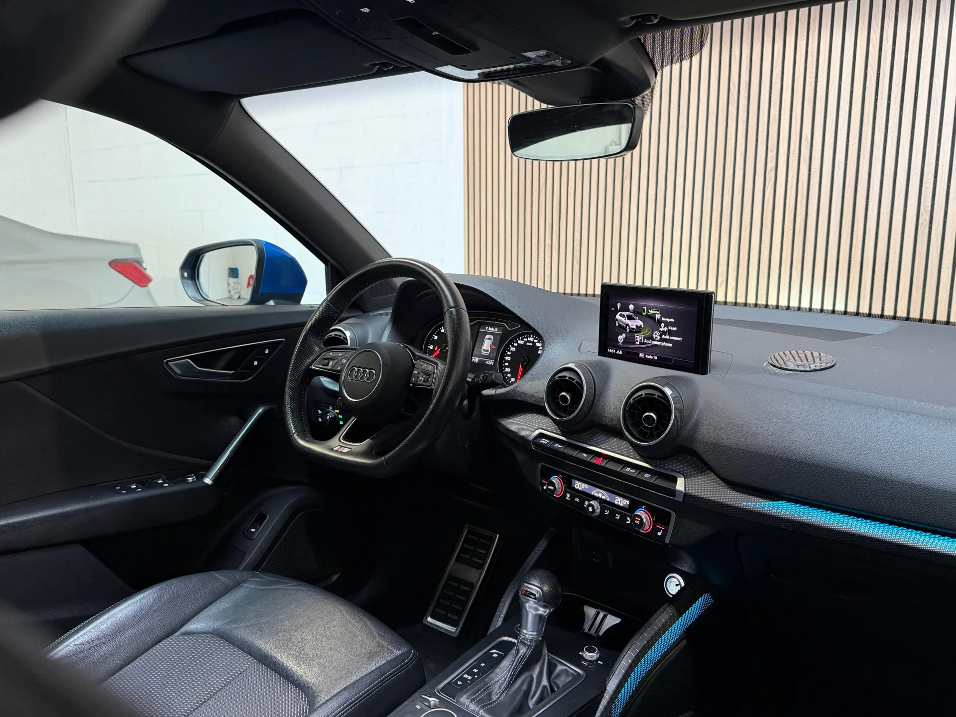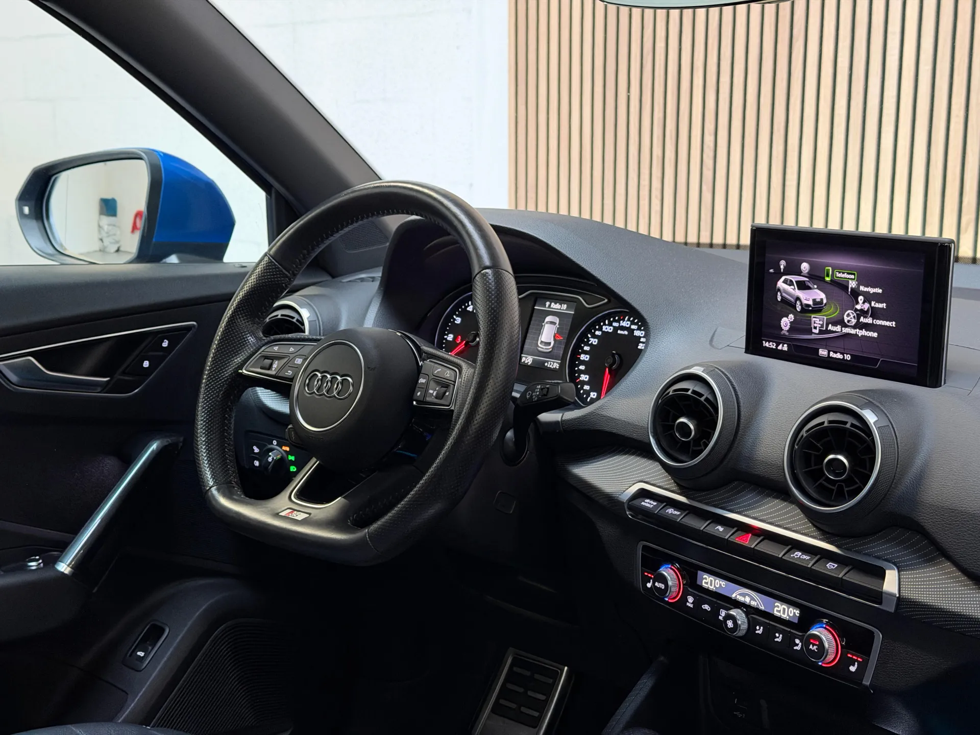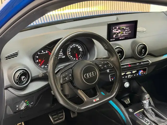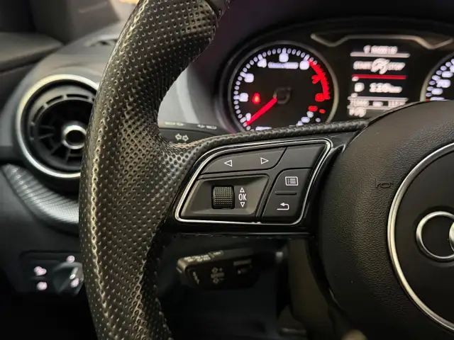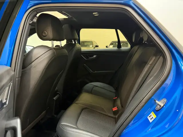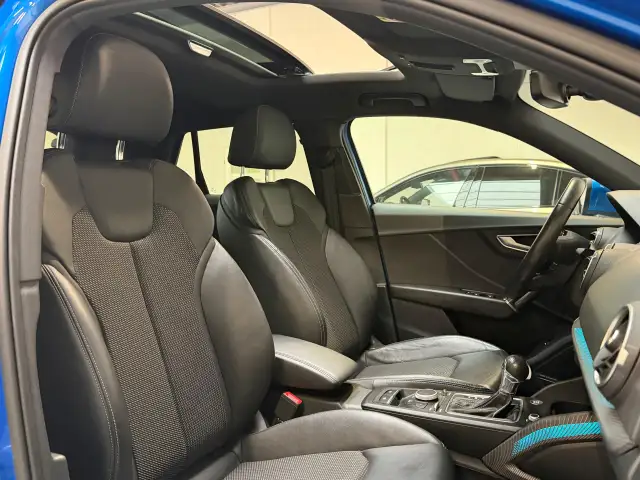 Alle technologie in de Audi Q2 is er op gericht om uw rit veilig en gemakkelijk te laten verlopen. Een beetje meer aandacht en een stoere uitstraling? Daar zorgt de S-Line styling voor. De aandrijving van deze Audi wordt verzorgd door een viercilinder motor en een automatische transmissie. Houdt u van een luxe uitstraling? Dan is het lederen interieur een heel aantrekkelijke extra! Koude start? Niet met de verwarmbare voorstoelen! In deze uitvoering is de Q2 voorzien van mooie, maar ook functionele sportstoelen. Van binnen lijkt het allemaal uitermate ruim dankzij de vrije inval van daglicht via het elektrisch bediende glazen panoramadak. De bagageruimte is toegankelijk via een comfortverhogende elektrische achterklep. Tot de voorzieningen van deze auto behoren 17 inch lichtmetalen velgen, LED koplampen, sportonderstel en warmtewerend glas. Adaptive cruise control is veilig en comfortabel. De snelheidsregelaar houdt automatisch afstand tot het voertuig dat voor u rijdt. Het high performance audiosysteem is volledig afgestemd op de akoestiek van de auto; genieten dus! Zoals van een eigentijdse auto verwacht mag worden, is deze Audi Q2 voorzien van een draadloze oplaadmogelijkheid voor telefoons. Het spreekt voor zich dat een auto als deze ook van automatische airconditioning is voorzien. Soms heeft u meer parkeerruimte dan u denkt. Maar soms ook niet. De parkeersensoren vertellen precies hoeveel. Deze auto is voorzien van navigatiesysteem, lederen sportstuur, DAB ontvangst, regensensor, keyless entry en centrale portiervergrendeling. De nieuwste veiligheidssystemen komen in deze Audi Q2 samen. In het instrumentarium laat de verkeersborddetectie de actuele verkeersborden zien. Onbedoeld buiten de rijstrook raken wordt voorkomen door het Lane-keeping systeem. Een ongeluk zit in een klein hoekje. Het accident avoidance system kijkt met u mee en helpt om ongevallen te voorkomen. Dankzij veiligheidsvoorzieningen als dodehoekdetectie, hill hold functie, frontale botsbescherming en bandenspanningcontrolesysteem, bent u steeds veilig onderweg.