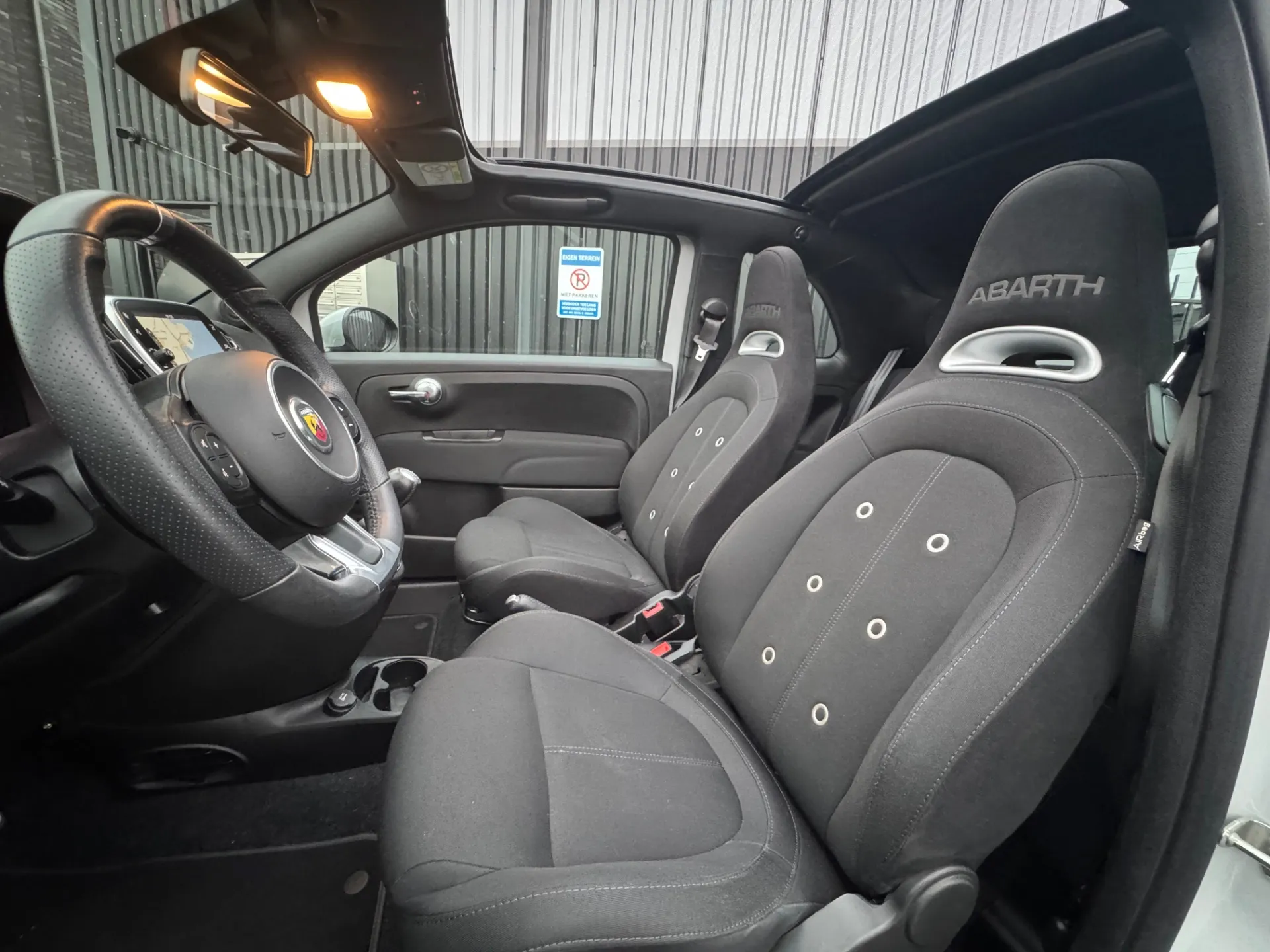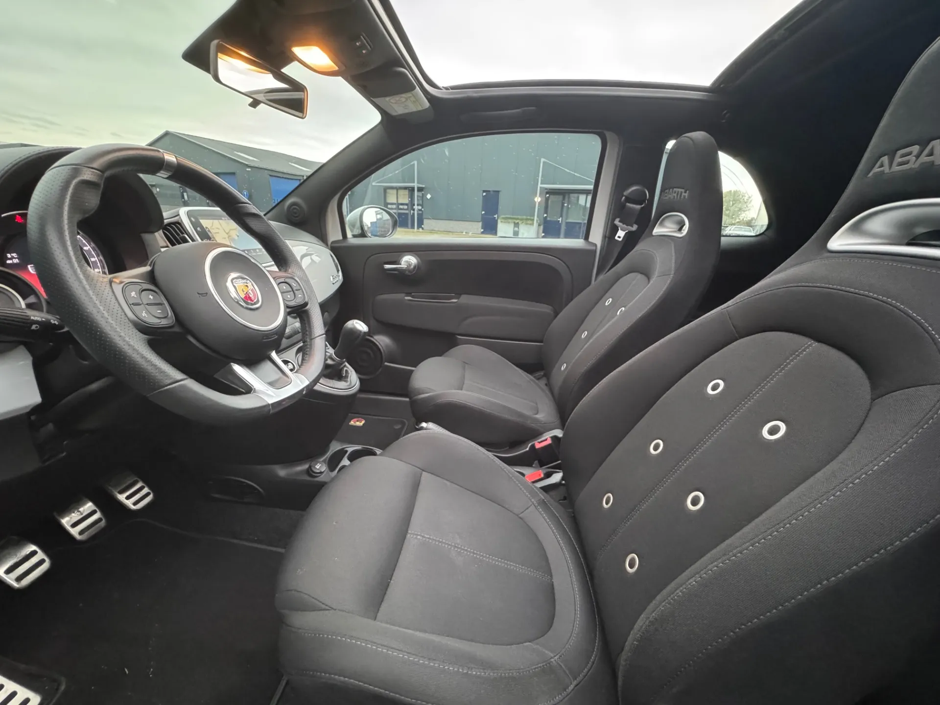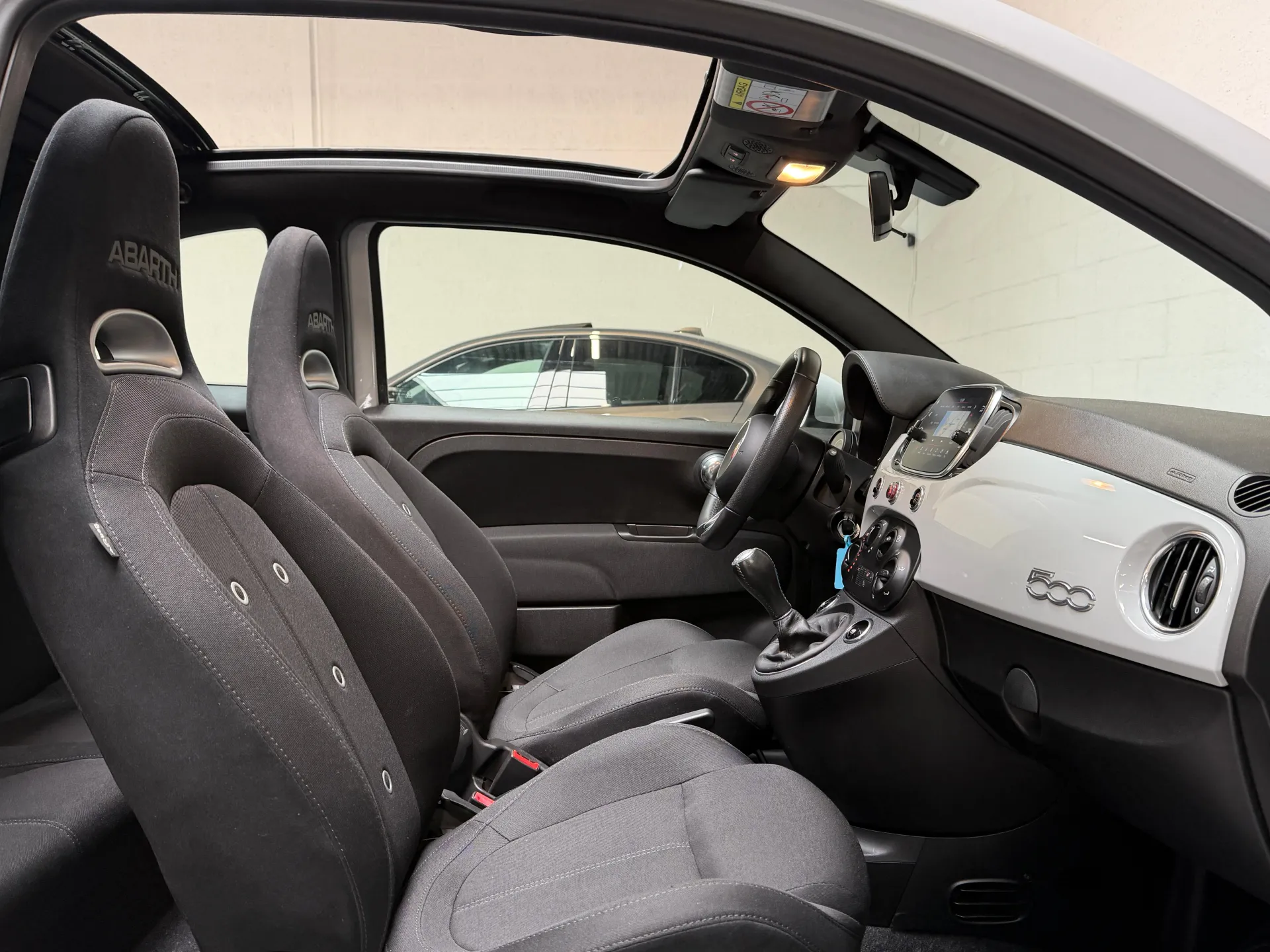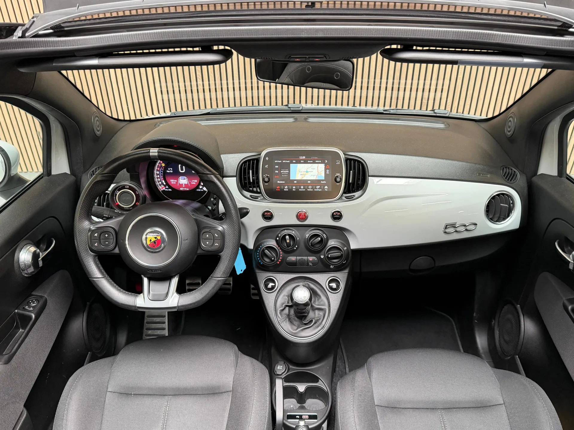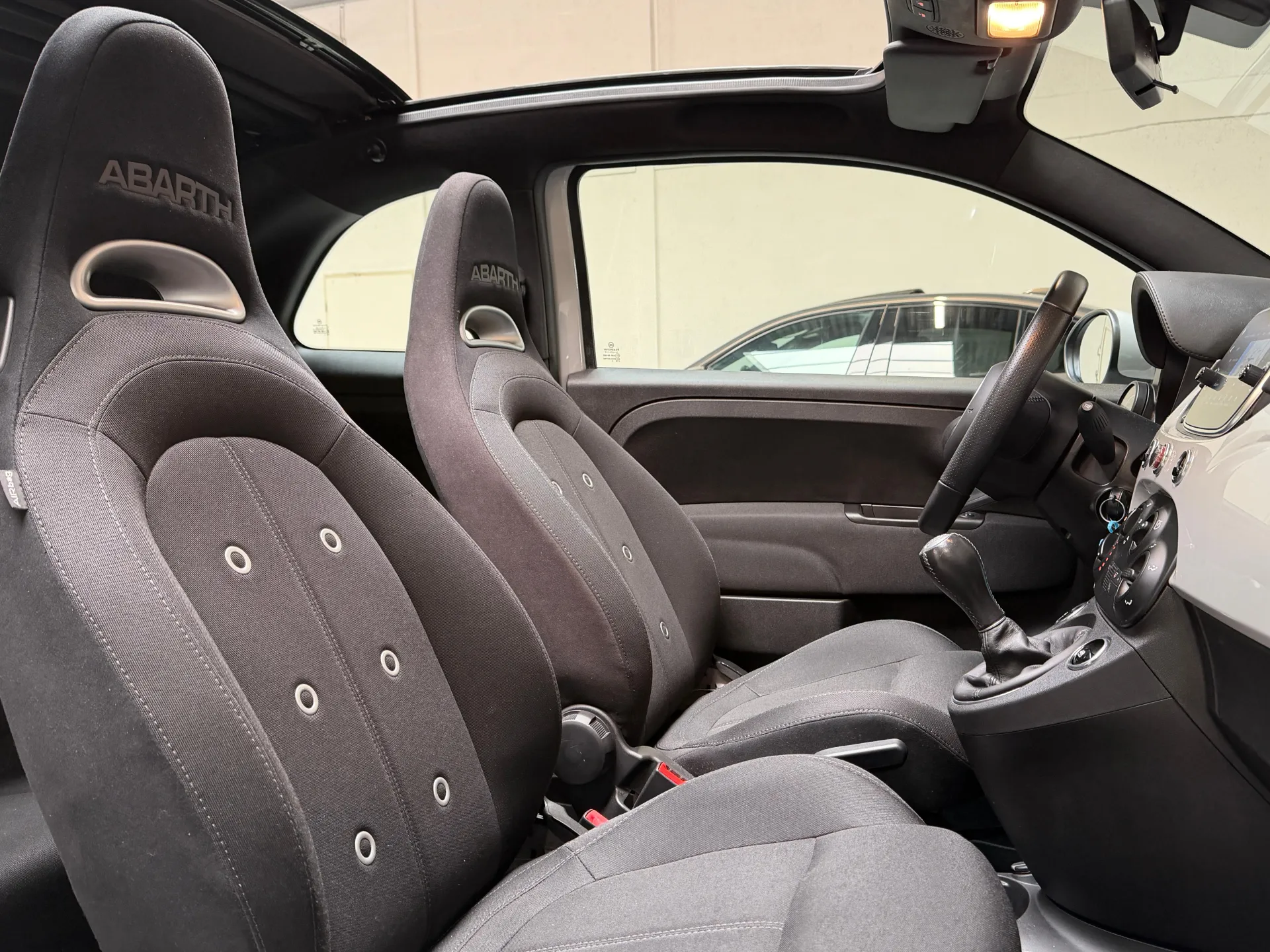 Stap in de Abarth 500C en omhels het rijplezier. Het interieur is ontworpen met aandacht voor detail en biedt een combinatie van comfort en sportiviteit. De hoogwaardige materialen en de ergonomische stoelen omarmen je tijdens elke rit, terwijl de geavanceerde technologie je verbonden houdt met de wereld om je heen.