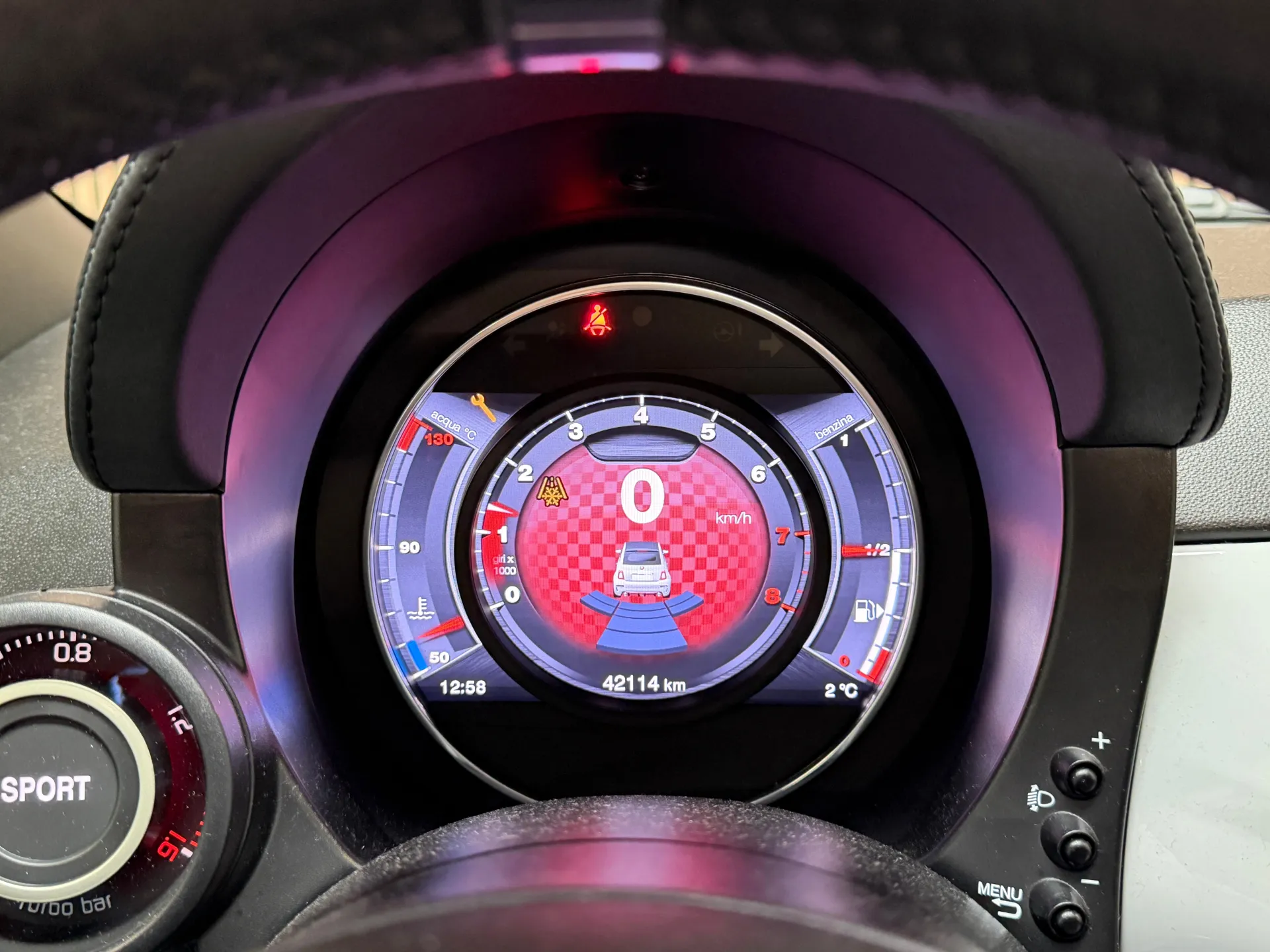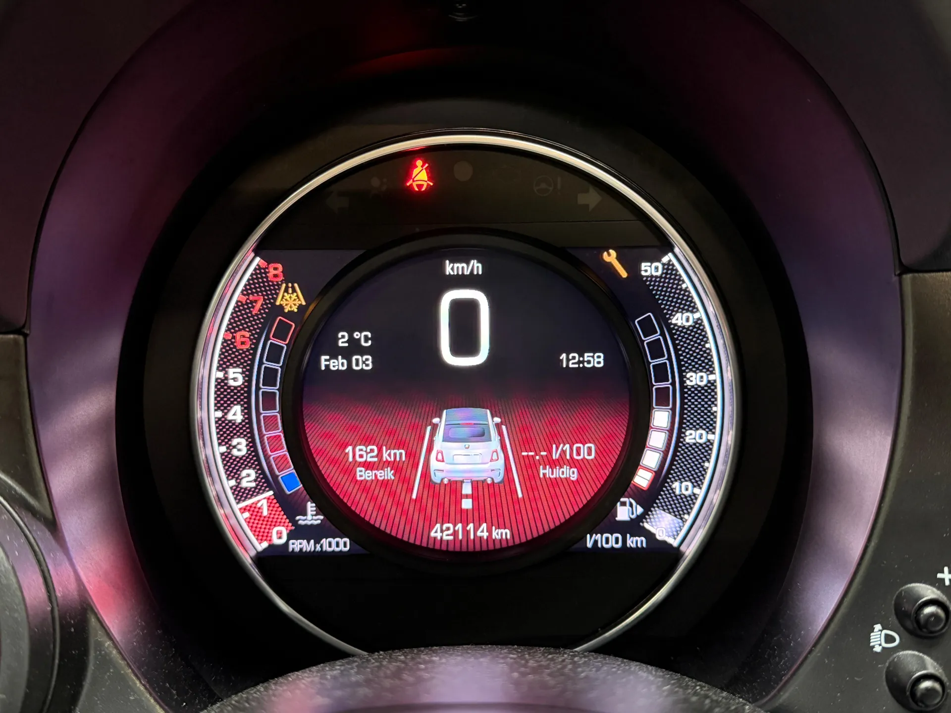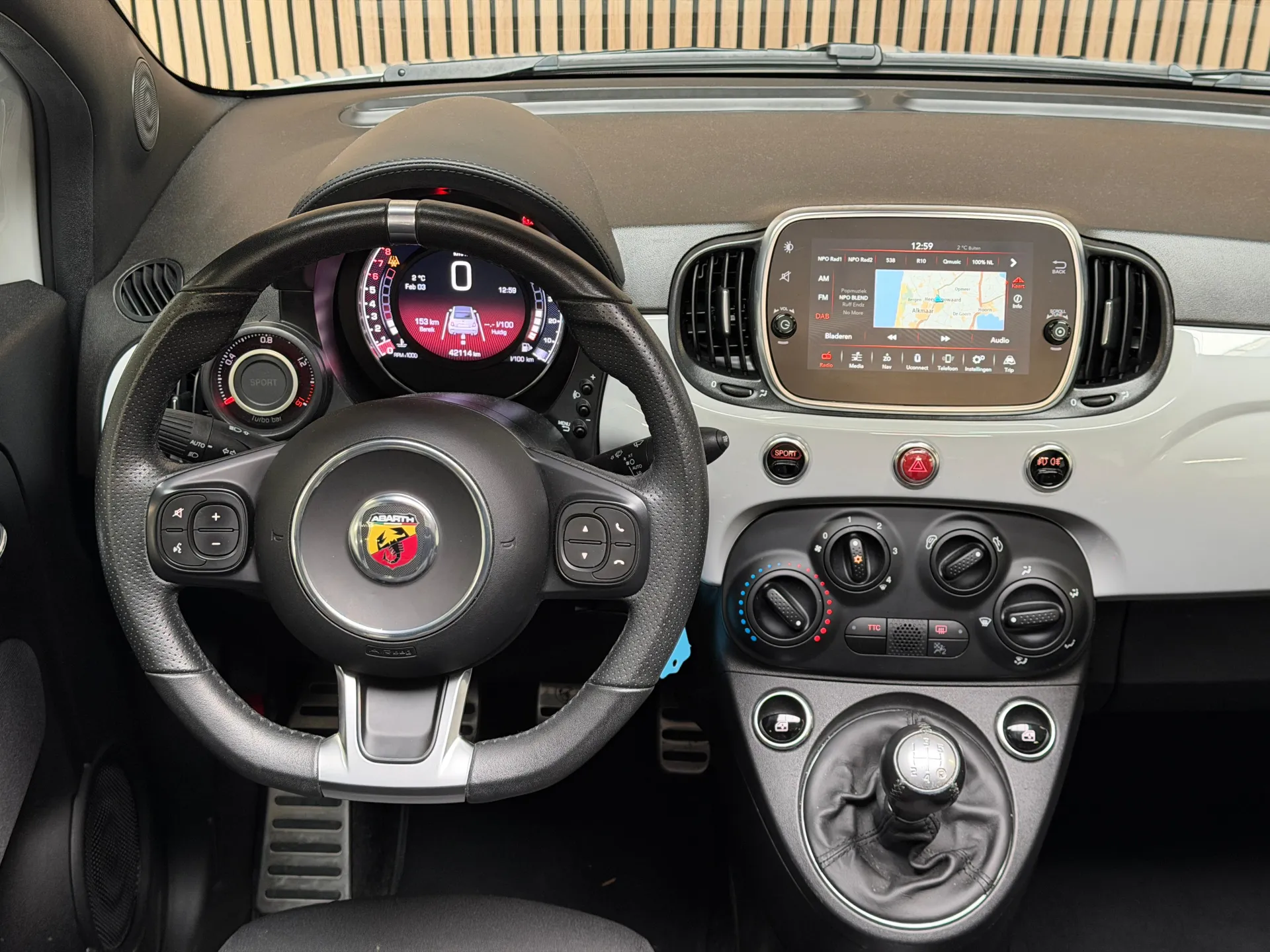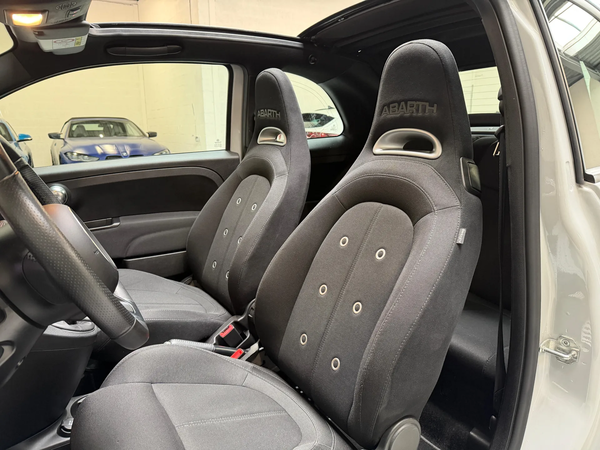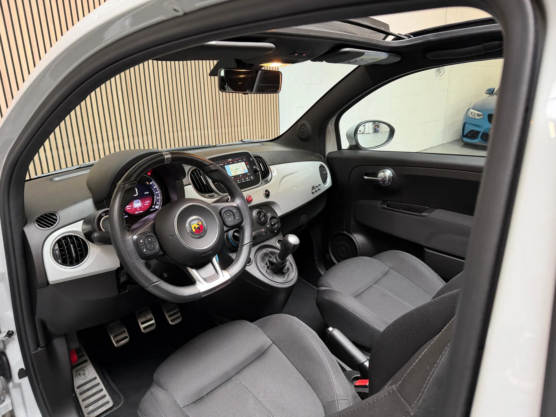 Stap in de Abarth 500C en omhels het rijplezier. Het interieur is ontworpen met aandacht voor detail en biedt een combinatie van comfort en sportiviteit. De hoogwaardige materialen en de ergonomische stoelen omarmen je tijdens elke rit, terwijl de geavanceerde technologie je verbonden houdt met de wereld om je heen.
