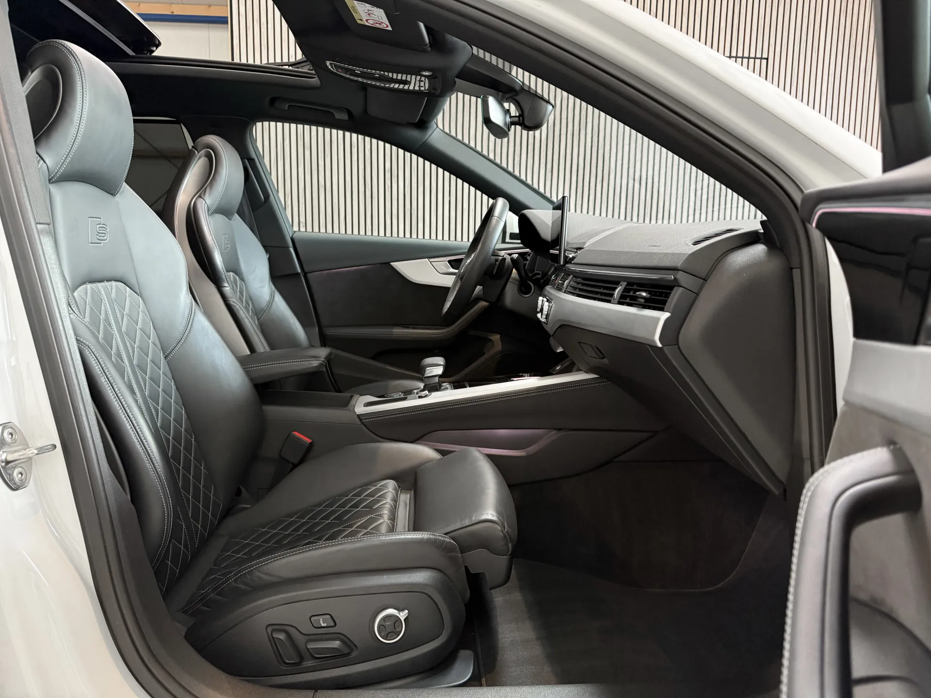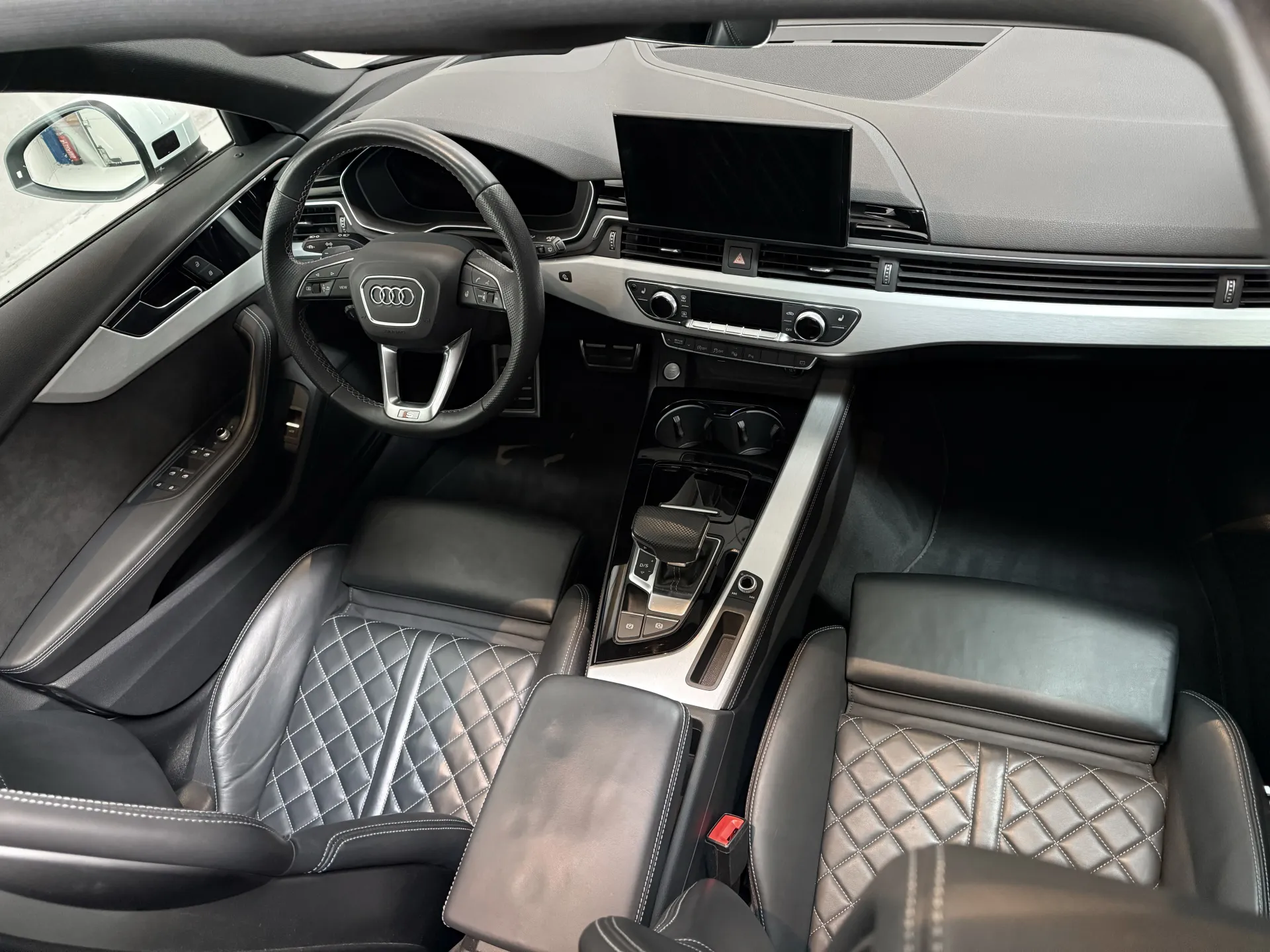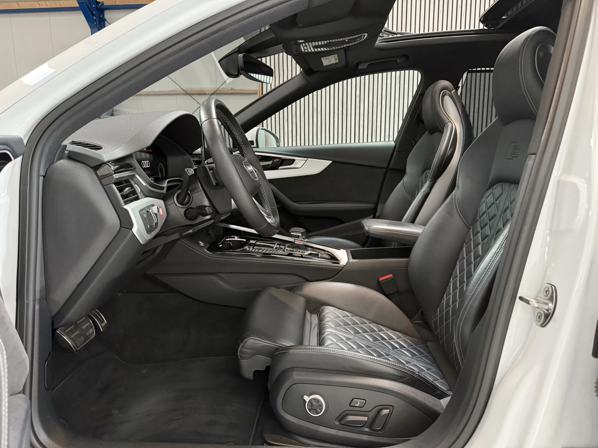 De opzet van het Audi-interieur is in elk geval strak en zakelijk zoals je van Audi mag verwachten. Met de optioneel leverbare RS nappa lederen sport stoelen aan boord maakt het de rijbeleving tot een waar genot. Over de opties werd goed nagedacht en er werd niet op meerkosten beknibbeld. De eerste eigenaar had een doel. De A4 moest voorzien zijn van alle belangrijke fabrieksopties, en dat is gelukt! De Audi is voorzien van onder andere; climatronic, zwart optiek, S-Line pakket, Audi Drive select, cruise control adaptief, led verlichting, zonwering achter, lichtmetalen velgen 19 inch Audi Sport, panoramadak, wegklapbare trekhaak, automaat, navigatie, 360 camera top view, head up display, dodehoek herkenning, zonwering, sfeerverlichting en ga zo maar door. Wij leveren de auto met de originele sleutels en dealer boorddocumentatie.