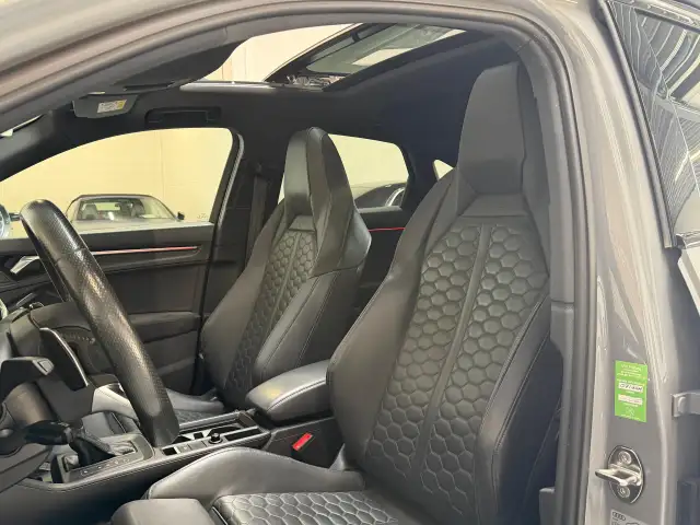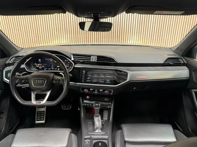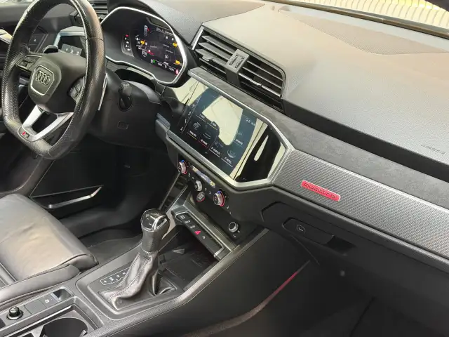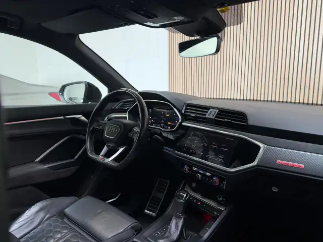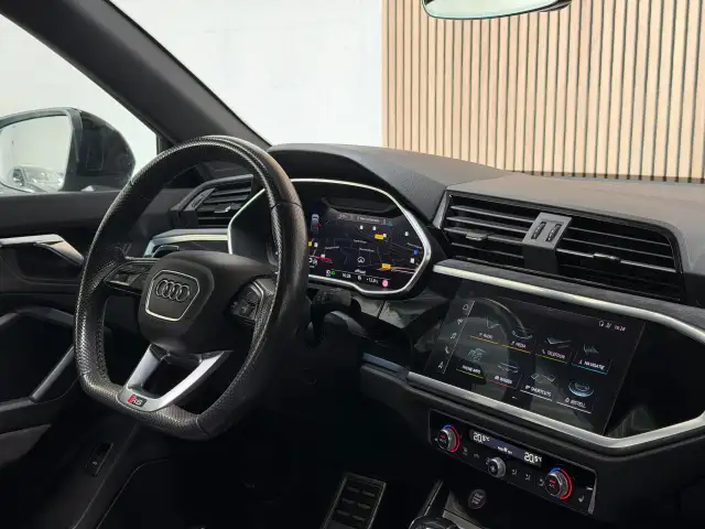 Hij ziet er geweldig uit, maar levert bovendien ook topprestaties. Als ook de uitstraling een beetje pittig mag, komt de S-Line styling mooi van pas. Een vijfcilinder motor en een automatische transmissie zorgen samen voor een snelle en comfortabele rijervaring. Een eyecatcher is het lederen interieur. Maar onderschat ook het voordeel van een aantal 'kleine' details niet, zoals het elektrisch bediende glazen panorama dak en de elektrisch bedienbare achterklep. Een weldaad voor u en uw bijrijder: deze Audi Q3 Sportback heeft verwarmbare voorstoelen. De sportstoelen houden u en uw bijrijder goed op z'n plek tijdens het accelereren en bij het nemen van scherpe bochten. Opvallend is de geavanceerde matrix LED-verlichting met daglichtkwaliteit. De koplampen dimmen automatisch het deel van de lichtstraal waar voor- of tegenliggers in rijden. De overige segmenten blijven aan en verlichten de weg maximaal. U wordt in deze auto ook getrakteerd op 21 inch lichtmetalen velgen, warmtewerend glas, in delen neerklapbare achterbank, LED-achterlichten, verstelbare lendensteunen en variabele stuurbekrachtiging.
