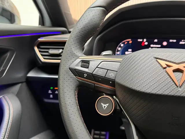 Ontspannen en zorgeloos autorijden, dat doet u met deze CUPRA Formentor. Een viercilinder motor en een automatische transmissie zorgen voor de uitstekende prestaties van deze auto. De verwarmbare voorstoelen benadrukken nog maar eens dat we hier te maken hebben met een regelrechte verwenauto voor bestuurder en bijrijder. De achterklep opent automatisch met een druk op de knop. Handig als u met volle handen staat. Het verwarmbare stuurwiel is een teken van ultieme luxe. Deze voorziening is een topklasse auto waardig. Vergeet halogeen; deze koplampen gebruiken de allernieuwste matrix LED-technologie met maximale lichtopbrengst zonder de tegenligger te hinderen. Verder is de CUPRA uitgerust met: schuif- en kanteldak, extra getint glas, in delen neerklapbare achterbank, LED-achterlichten en snelheidsafhankelijke stuurbekrachtiging.