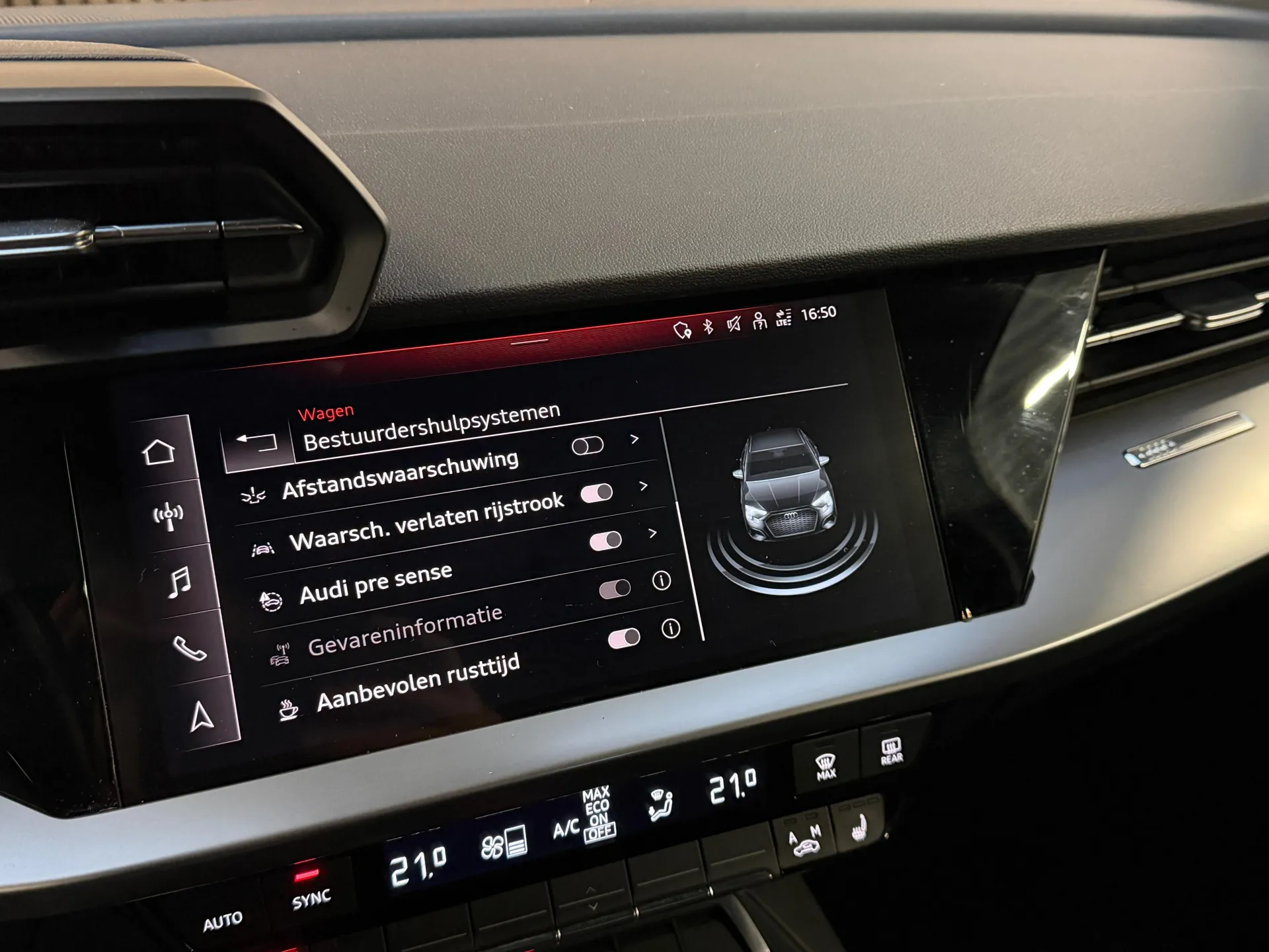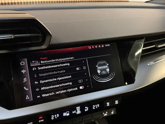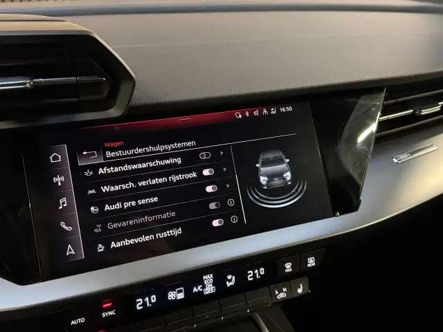 De nieuwste veiligheidssystemen komen in deze Audi A3 Limousine samen. Wat deze auto ook kan, is lezen. Hij 'leest' voor u de verkeersborden tijdens de rit en attendeert u erop door ze op het dashboard te projecteren. Met het Lane-keeping systeem gaat u nooit onbedoeld over de streep. In druk verkeer en onoverzichtelijke situaties helpt het accident avoidance system mee om een aanrijding te vermijden. De veiligheid van deze auto wordt verder verhoogd door brake assist en bandenspanningcontrolesysteem.