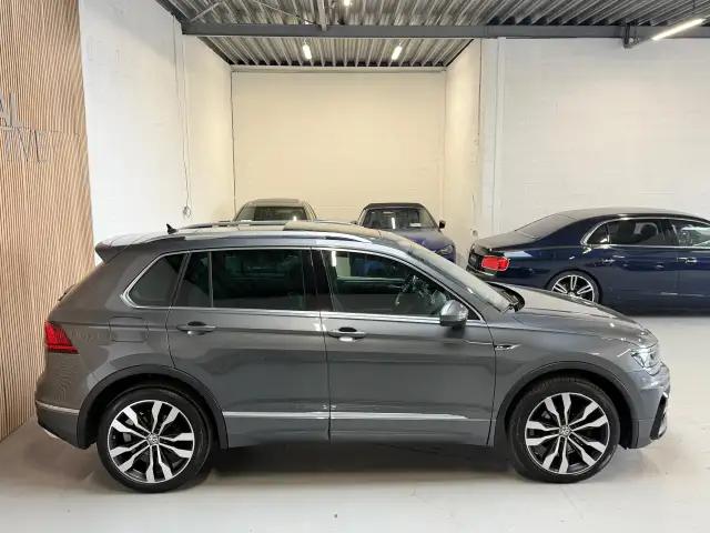Een Volkswagen pik je er altijd uit, want je herkent hem aan zijn dynamische styling, aan zijn degelijke bouw en aan zijn sportieve lijnen. Dat geldt ook voor deze Tiguan, die met zijn eigentijdse design helemaal past in het moderne straatbeeld. Je moet tegen een beetje extra aandacht kunnen, want dat levert de R-Line styling gegarandeerd op. Niet voor niets is de vraag naar gebruikte Volkswagens zo groot, want de kwaliteit staat ook na een aantal jaren nog buiten kijf, zoals aan deze Tiguan duidelijk te zien is. Een krachtige motor geeft deze auto zijn sportieve prestaties. Het lederen interieur is een stijlvolle extra van deze Volkswagen Tiguan. Dankzij de elektrische stoelbediening is het gemakkelijk om de optimale zitpositie te vinden. Licht en lucht komen onbelemmerd binnen als het elektrisch bediende glazen panoramadak met één druk op de knop wordt geopend. De elektrisch bedienbare achterklep opent met een druk op de knop. Tot de uitrusting van deze Volkswagen behoren ook 20 inch lichtmetalen velgen, LED koplampen, extra getint glas, in delen neerklapbare achterbank, LED-achterlichten en verwarmde ruitensproeiers.